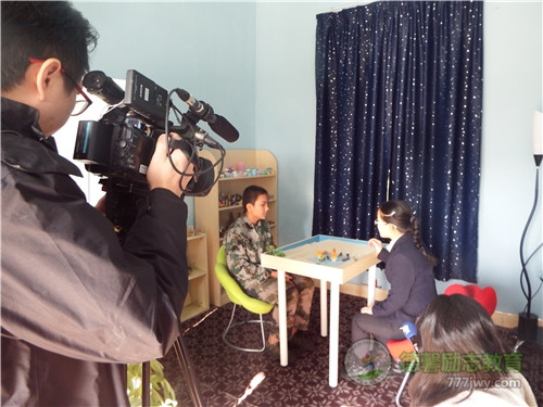 臺灣記者在采訪德馨勵志教育一對一的心理沙盤測試